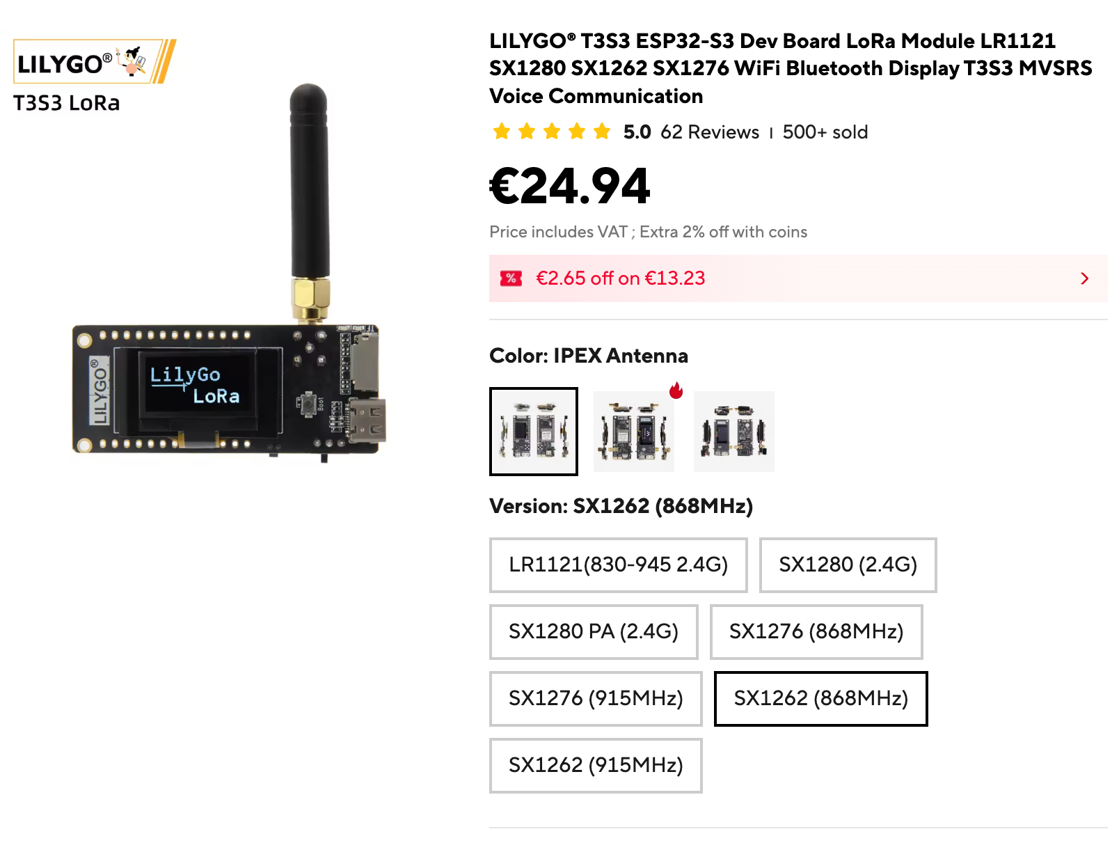The devices listed above are not the most energy-efficient options available to the public. The Heltec v3 and LilyGo T3S3 are based on the ESP32 SoC, which is one of the most popular platforms for Bluetooth- and Wi-Fi-based connectivity, but the Nordic nRF platform is far more energy-efficient.